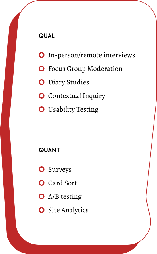 I come from an analytical background in economics and finance. I have also studied and practiced human centered design and research methods. I’ve worked on: