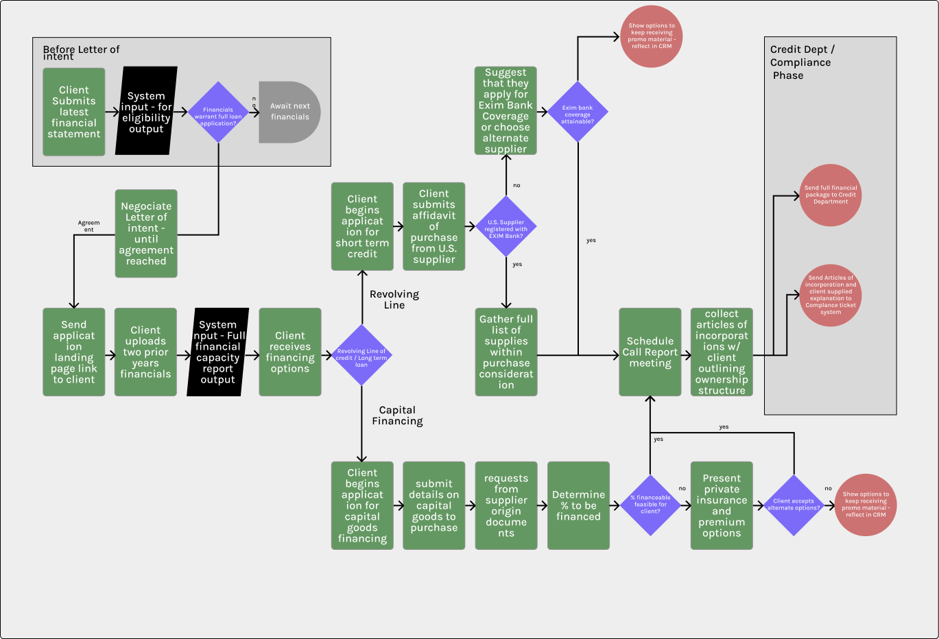 Designed an online form reducing time needed to structure a loan and disburse funds by ~30% . I used surveys, client interviews and a pilot to gather data. Key deliverables were persona development, user journey map, user flows, wireframes, prototypes and a working online form.